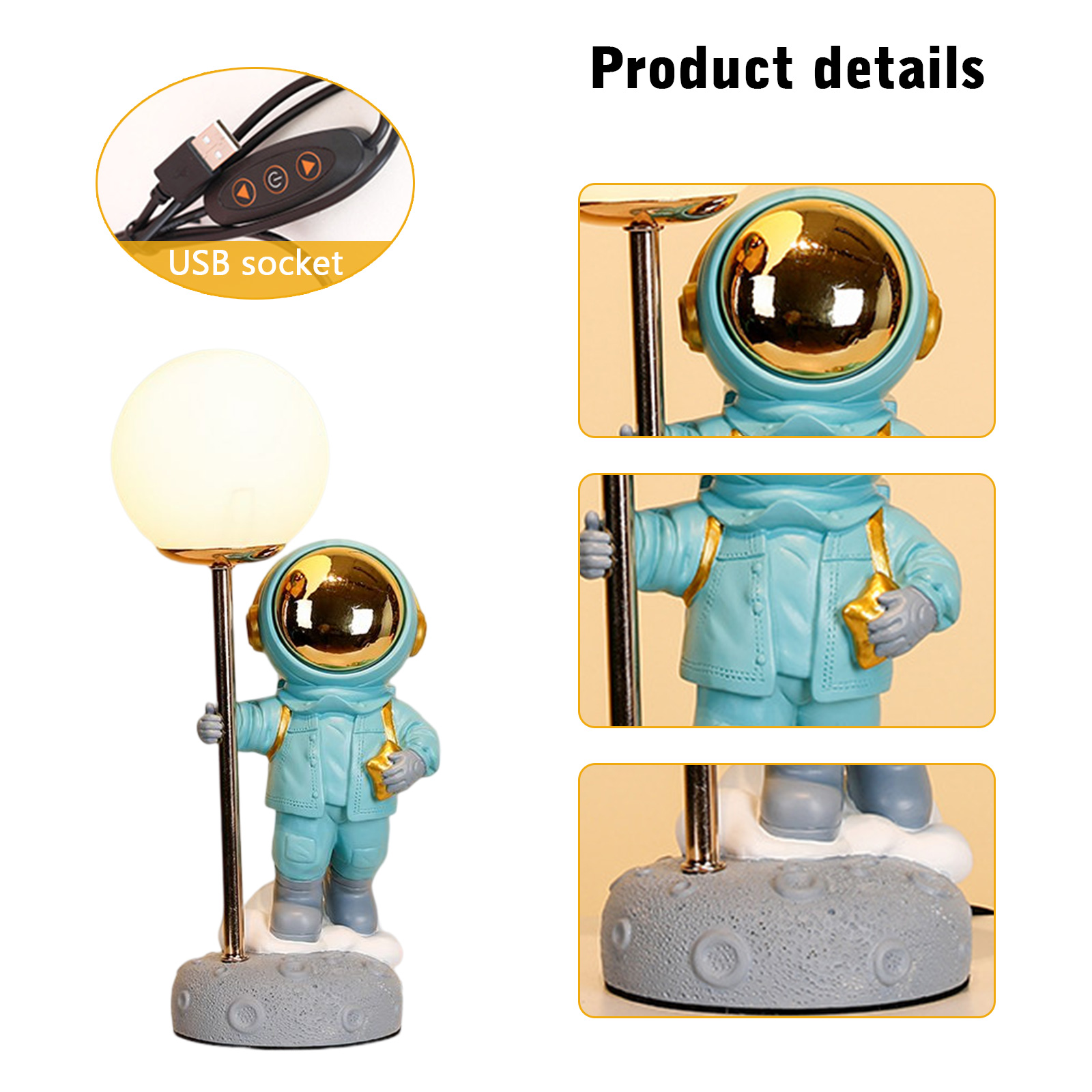 - Mejora el dormitorio de tu hijo con esta exclusiva lámpara de escritorio de astronauta, con iluminación LED y conectividad USB para un uso fácil. La función de cuidado de los ojos garantiza una comodidad óptima durante el uso, por lo que es un complemento ideal para un escritorio o mesita de noche. Esta lámpara también es un gran regalo de cumpleaños para cualquier niño amante del espacio.
